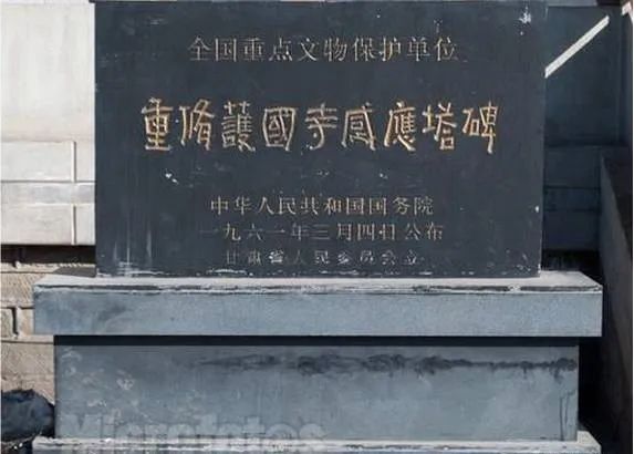 西夏碑,本名《涼州重修護(hù)國寺感通塔碑銘》,碑高26米,寬1米,厚03米。碑首呈半圓形,兩面正中用漢文和西夏文篆額,邊陰刻對稱的伎樂舞女,翩翩起舞,動作優(yōu)美,造型準(zhǔn)確;舞女胸和手腕上有飾物,赤露上身、雙腳,下著長裙,面形肌肉豐滿,吸收了敦煌飛天的藝術(shù)特點(diǎn)。碑身的兩邊呈殺角,邊上刻忍冬紋。碑一面為西夏文,共28行,滿行65字。西夏文是一種被人們遺忘了的語言文字,無法辨認(rèn),當(dāng)時(shí)被稱為“天書”。但碑的陽面為漢文,共26行,滿行76字。張澍先生見碑陽文末尾有“天祐民安五年歲次甲戌十五日戊建”落款,“天祐民安”為西夏年號,遂判定此碑為西夏碑文,因此,人們以后稱之為西夏碑。1961年就被國務(wù)院公布列為全國第一批重點(diǎn)文物保護(hù)單位。