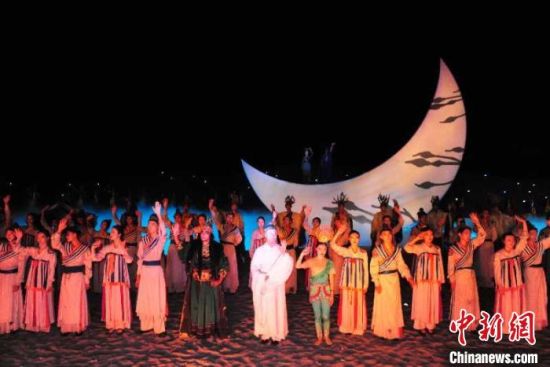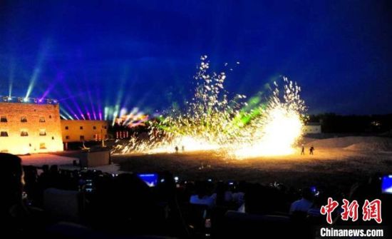 圖為沙漠實景劇《敦煌盛典》的演出現(xiàn)場,觀眾在“穿越”古今的賞劇體驗中感觸絲路文化。 康錦虎 攝