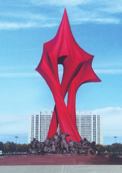 內(nèi)蒙古興安盟是新中國建立的第一個紅色革命自治區(qū),建于1947年,而位于興安盟行署前烏蘭浩特中心公園廣場就有一座何鄂先生創(chuàng)作的不銹鋼城雕《焰紅興安》,是興安盟獨具特色的標志性紅色建筑。