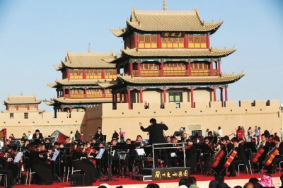 近日,大型交響樂(lè)《長(zhǎng)城》于中秋、國(guó)慶“雙節(jié)”黃金周在國(guó)家5A級(jí)景區(qū)嘉峪關(guān)關(guān)城激情上演,雄渾的交響曲不僅使得古老絲路精神再次煥發(fā)勃勃生機(jī),更用動(dòng)人的旋律再一次解讀了“一帶一路”倡議和國(guó)家向西開(kāi)放戰(zhàn)略給甘肅帶來(lái)的重大機(jī)遇,闡釋了“交響絲路、如意甘肅”豐富而嶄新的意蘊(yùn)。