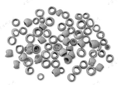 在出土的文物中,有一件連珠紋釉陶杯。這是一件玻璃態(tài)水杯,出土時人們還發(fā)現(xiàn)了一些疑似杯子的殘片,在同一墓坑中還同時出土了大量料珠。這個玻璃態(tài)水杯紋飾獨特,通體藍色釉飾,底部手握處,竟然設計有7圈珠紋。顯然,這些凸出的珠紋,除了美觀外,還可以增加摩擦,避免杯子從手中滑落,當然也不排除珠紋還有其他含義。
