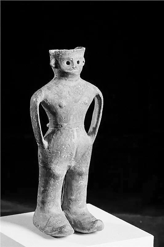 到了1989年,清泉中學(xué)的師生們?cè)趯W(xué)校附近植樹(shù),無(wú)意間又挖出了一件陶器,這是一件人形彩陶罐。