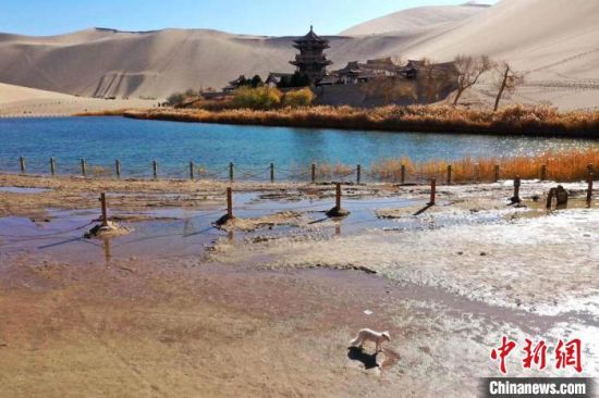 原標(biāo)題:小白狐“打卡”甘肅敦煌鳴沙山月牙泉景區(qū)