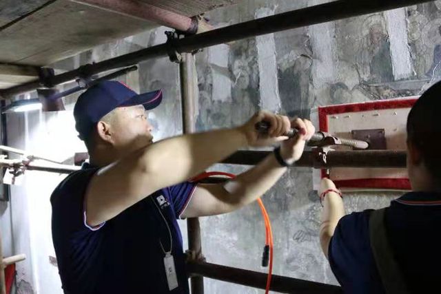 讓李曉洋最終留在這個(gè)行業(yè)的“決定性瞬間”發(fā)生在2014年,他和同事在莫高窟360窟開(kāi)展壁畫修復(fù)。修復(fù)前,墻上的壁畫幾乎完全被浮塵遮蓋,損毀也很嚴(yán)重;修復(fù)后,壁畫變得清晰、線條十分明確。那一瞬間,他仿佛有穿梭千年的晃神,“這件事讓我很有成就感,覺(jué)得通過(guò)我們的努力,能夠讓更多人看到更精美的壁畫,值了。”