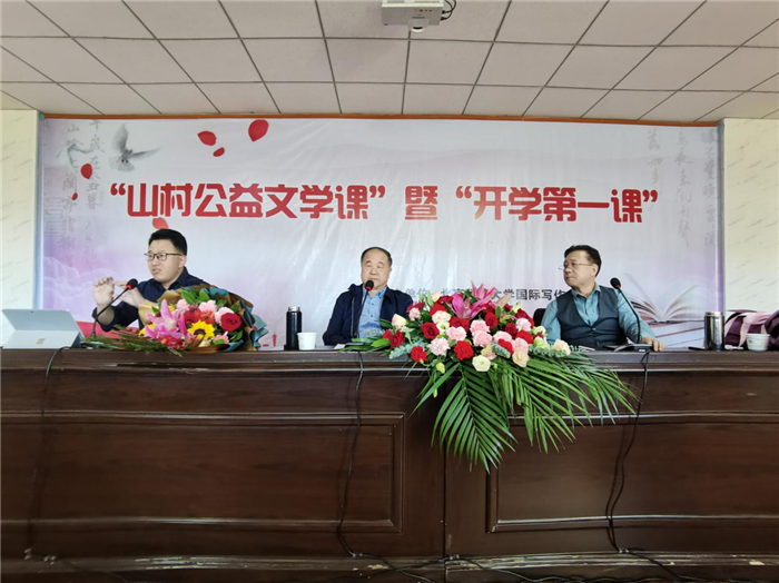 中國甘肅網(wǎng)9月6日訊 9月6日上午九點,由北京師范大學(xué)國際寫作中心、武威市教育局、武威市文體廣電和旅游局、涼州區(qū)教育局共同主辦的“山村公益文學(xué)課”暨“開學(xué)第一課”在武威第十一中學(xué)開講?;顒佑晌渫谑恢袑W(xué)趙衛(wèi)國校長主持。諾貝爾文學(xué)獎獲獎作家、北京師范大學(xué)國際寫作中心主任莫言教授以《讀書與寫作》為題,為十一中的師生講了一堂別開生面、深入淺出的寫作課。隨后,北京師范大學(xué)國際寫作中心主任助理翟文鋮教授、西北師范大學(xué)傳媒學(xué)院院長徐兆壽教授,分別就同學(xué)們的作文進行了現(xiàn)場指導(dǎo)。參加此次活動的還有北京舒同文化研究會會長王振先生、北京師范大學(xué)國際寫作中心主任助理張曉琴教授。