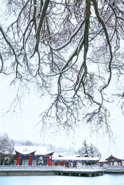 去年12月底,一位老師來西峰講學(xué),我陪先生到濕地海綿公園轉(zhuǎn)悠,剛剛步入人行道,發(fā)現(xiàn)遠處湖水中央有七八只白鷺在棲息,朝陽斜射到湖面上,水波瀲滟,像細碎的金斑,白鷺安詳?shù)叵礈熘鹈幸恢话槅瓮戎绷⒅?,恰似依著一根筆直纖細的鐵絲,半張著翅膀,欲飛不飛的樣子,剩下的幾只白鷺在戲水,迷人極了。