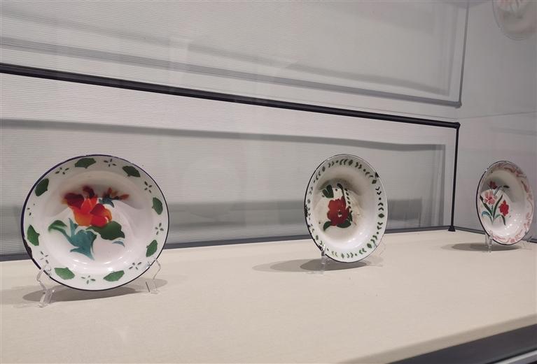 本次展出的156件展品均為蘭州搪瓷廠藝術(shù)底稿和實(shí)物,目前由甘肅三木自行車博物館收藏,其中搪瓷手繪設(shè)計(jì)圖稿65幅,搪瓷器皿91件。展出手繪設(shè)計(jì)圖稿均為蘭州搪瓷廠王村等人設(shè)計(jì)繪圖,分為湯盆、面盆、菜盤、茶盤4大類:圖案內(nèi)容有花鳥、人物、動(dòng)物、客輪、軍艦,包括經(jīng)典圖案“紅雙喜”“幸福”“美好”等,大小尺寸由26至38厘米之間。器皿類搪瓷有盆類、盤類、缸類、碗類。展覽充分體現(xiàn)了蘭州搪瓷廠設(shè)計(jì)室及工人們在繼承傳統(tǒng)陶瓷工藝的基礎(chǔ)上有了創(chuàng)新和鮮明的時(shí)代特色。