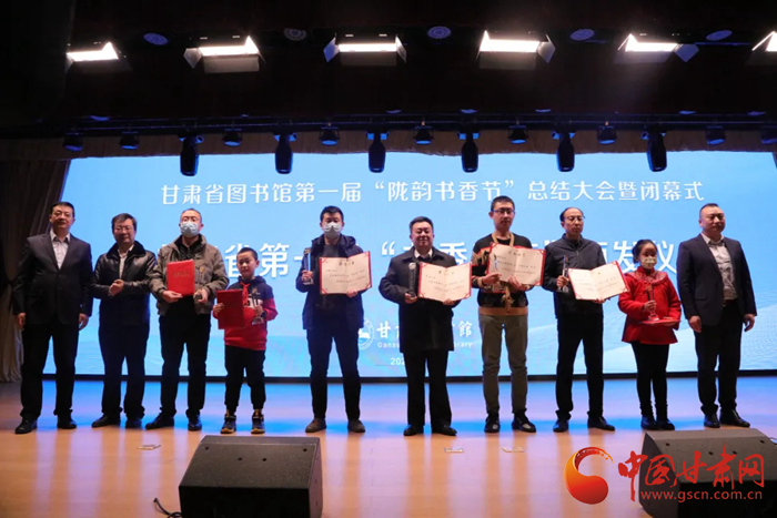 中國(guó)甘肅網(wǎng)12月28日訊(本網(wǎng)記者 張?zhí)m琴 通訊員 吳鵬)12月27日,歷時(shí)8個(gè)月的甘肅省圖書(shū)館第一屆隴韻書(shū)香節(jié)圓滿(mǎn)落幕。閉幕儀式上播放了第一屆“隴韻書(shū)香節(jié)”活動(dòng)總結(jié)短片和書(shū)香家庭宣傳短片,公布了“隴韻書(shū)香節(jié)”形象標(biāo)識(shí)(LOGO)方案,并為“甘肅省第一屆書(shū)香家庭”獲得者、“紅色經(jīng)典閱讀  點(diǎn)亮愛(ài)黨紅心”活動(dòng)獲獎(jiǎng)?wù)哳C獎(jiǎng)。