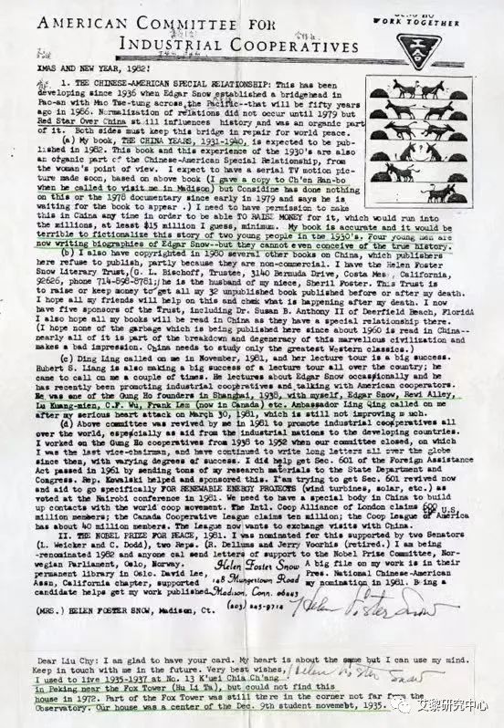 今年2月7日,國內(nèi)各大媒體公布了國家主席習近平1月27日給美國海倫·福斯特·斯諾基金會主席亞當·福斯特的復信,提到“斯諾夫婦積極推動中國工合運動”、“為中國革命和建設事業(yè)做出貢獻”。
