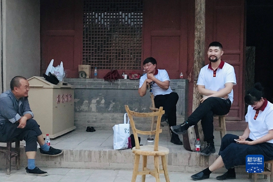 2021年6月,劉小同(右二)和同事一起參加文藝活動排練。新華社發(fā)(受訪者供圖)
