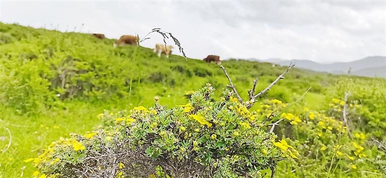 積石山縣黃草坪被譽(yù)為“原生態(tài)旅游的樂園”,是我州旅游大通道上的又一處絕美風(fēng)景。圖為6月12日,隨著金露梅的盛開,該景區(qū)迎來(lái)大批游客,人們置身其中,盡享大自然的饋贈(zèng)。