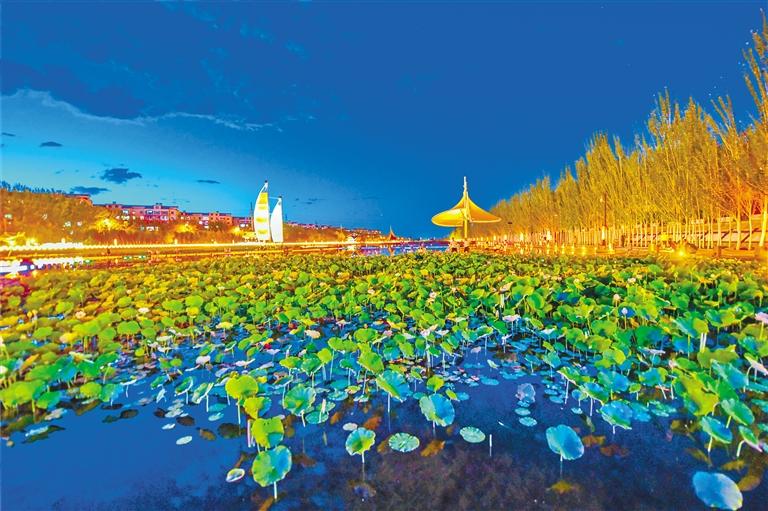 敦煌大漠荷花盛開(kāi)。奔流新聞·蘭州晨報(bào)通訊員 王斌銀 攝