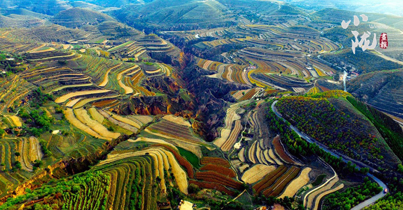 滿目金黃香百里,一方春色醉千山。這里的每座山、每條溝、每處景、都成為可以翻閱的經(jīng)典,都成為可以觸摸到歷史沿革的脈絡(luò)和文化傳承的脈點(diǎn);一望無垠的油菜花海和綠油油的莊稼地,就像一塊漫山遍野的巨大調(diào)色板,描繪出辛勤耕耘必獲豐收的美景。
