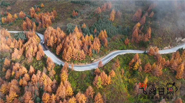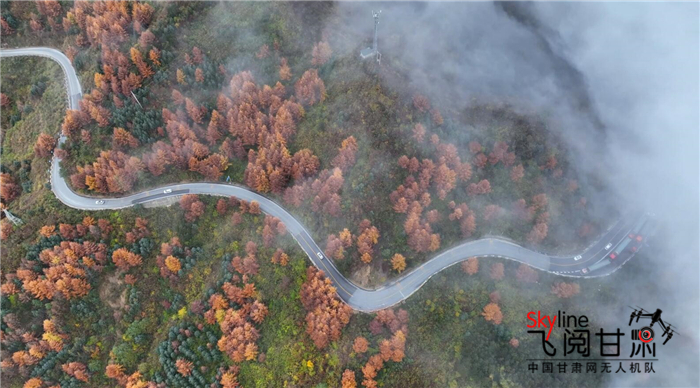 “一年好景君須記,最是橙黃橘綠時。”在初冬遇見深秋。隴南文縣的高樓山依然色彩斑斕,驅車沿著蜿蜒山路前行,目之所及皆是秋日童話世界。從空中俯瞰,公路更是在斑斕的林海中延伸,在薄霧籠罩中遇見遠方。