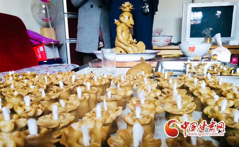 依照鄉(xiāng)俗,燈的數(shù)量一般為娘家最長(zhǎng)輩(爺爺、奶奶或父母)兩口子的年齡之和,以取健康長(zhǎng)壽之意。因?yàn)槊恳槐K小面燈里都插著棉花做的燈芯,注入適量清油,這樣在晚上就可以點(diǎn)燃。