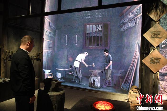圖為游客在大漢賦館內(nèi)參觀(guān)鐵匠鋪。 戴文昌 攝