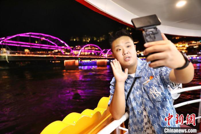 7月16日,“絲路風(fēng)采 如意甘肅”海峽兩岸記者聯(lián)合采訪活動(dòng)在甘肅蘭州啟動(dòng)。圖為臺(tái)灣自媒體人林惟綱在“黃河第一橋”——中山橋下拍攝短視頻。 中新社記者 李雪峰 攝