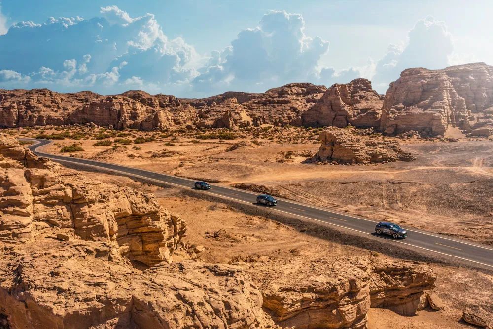 新華社“一帶一路全球行”報(bào)道團(tuán)車隊(duì)穿越新疆哈密大海道。新華社發(fā)(卓鵬 攝)