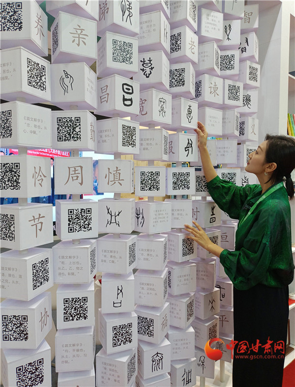 中國甘肅網(wǎng)9月22日訊(西北角·中國甘肅網(wǎng)記者 宋芳科 馮睿棟)中國文字,東方表達。漢字是我們的文化符號,從甲骨文到金文到篆書、楷書,一步步走來見證著中華的文明文脈。山東作為孔孟之鄉(xiāng),禮儀之邦,出版業(yè)亦重視傳統(tǒng)文化傳承。此次山東展團來敦煌參加第十三屆中國數(shù)字出版博覽會,帶來了《中國人 中國字》系列書籍和相關的文創(chuàng)衍生產(chǎn)品,盡顯中華文字之美,寓意之妙。