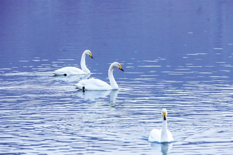 中國(guó)甘肅網(wǎng)12月4日訊 據(jù)蘭州晚報(bào)報(bào)道(記者 譚安麗/文 甘霖/圖)“生態(tài)好不好,鳥兒是晴雨表。”近日,西固區(qū)達(dá)川鎮(zhèn)三河口迎來了今年首批越冬大天鵝,吸引了眾多市民游客前往觀賞。記者從蘭州市林業(yè)局了解到,目前黃河蘭州段濕地分布和棲息的濕地鳥類約有68種,其中,國(guó)家I級(jí)重點(diǎn)保護(hù)鳥類3種(黑嘴鷗、黑鸛、白尾海雕),國(guó)家II級(jí)保護(hù)鳥類5種(大天鵝、鴛鴦、鹮嘴鷸、白腰杓鷸、鶚)。鵲鴨、綠頭鴨、斑嘴鴨、普通秋沙鴨和漁鷗等優(yōu)勢(shì)越冬水鳥種群數(shù)量較大,主要棲息地分布在沿線各灘涂地,棲息地質(zhì)量較高。