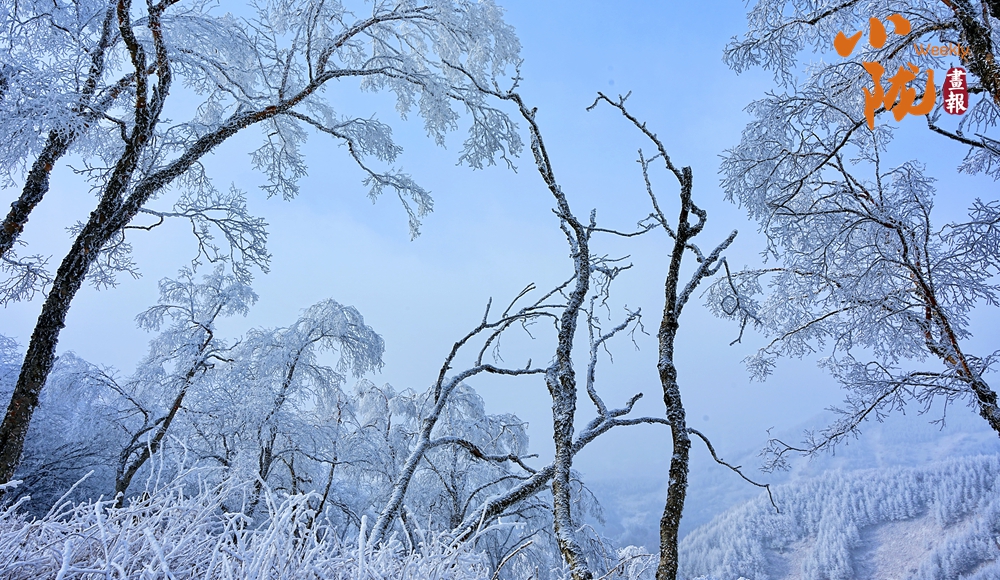 走進(jìn)關(guān)山,看到的是一個(gè)神話般的雪韻凇情美景,霧凇結(jié)在樹(shù)上,亮晶晶的猶如一根根銀條,浪漫唯美,別有韻味。