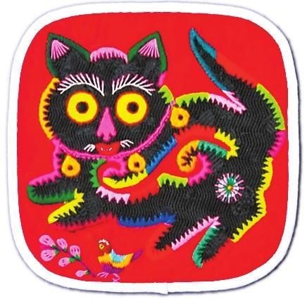 華池民間布貼畫是一種古老的民間工藝美術(shù),是隴東文化的重要組成部分。華池拼布創(chuàng)作以粗布為原料,色彩豐富鮮艷,剪貼的邊線明朗整潔,富有木刻版畫的刀木特點。其內(nèi)容多取材于人物、動物、花鳥等題材,注重色彩對比,以大紅大紫的色彩,夸張化的描述,追求強烈的直觀效果,講究裝飾性;風(fēng)格浪漫稚拙,渾厚質(zhì)樸,氣韻生動。