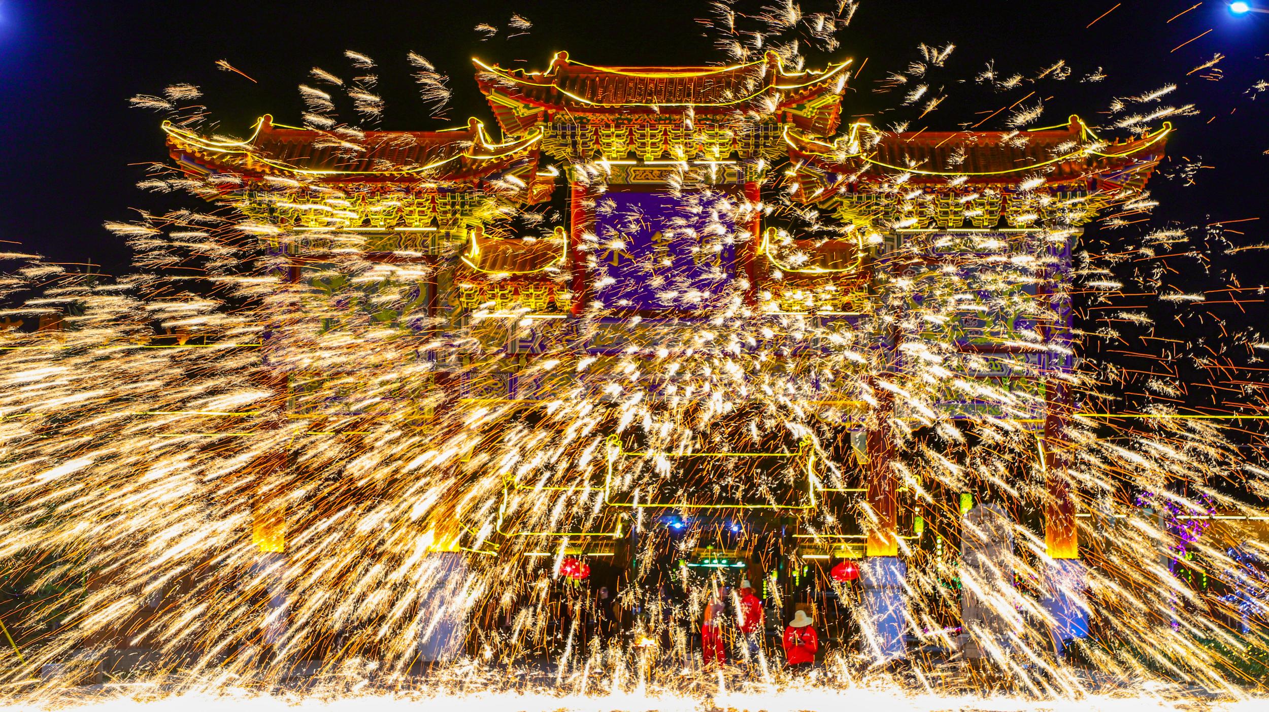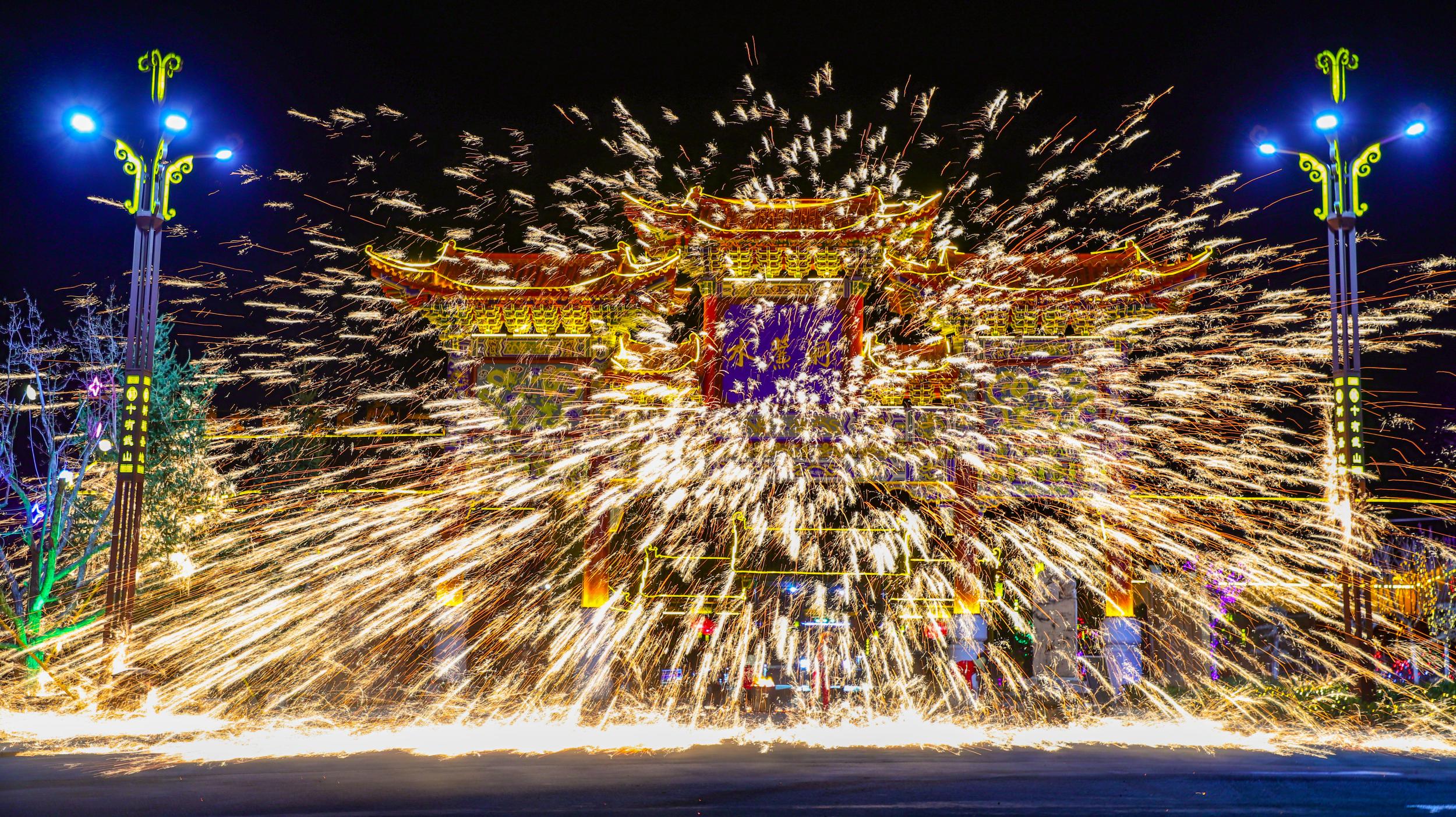 璀璨奪目的鐵花在空中綻放,場(chǎng)面十分壯觀。民眾在火樹銀花、星光璀璨之間感受著濃濃的中國傳統(tǒng)民俗文化。