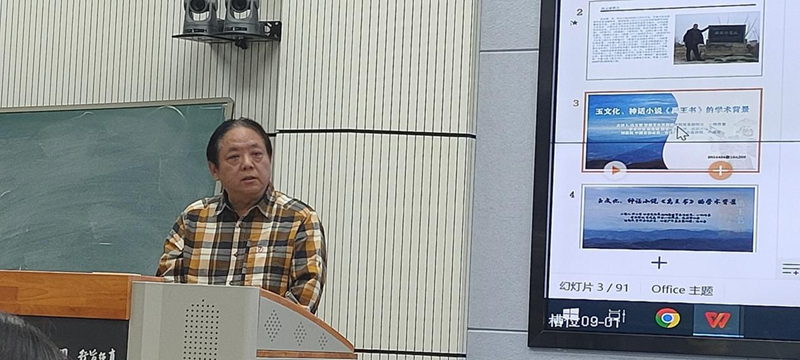 馮玉雷一直認(rèn)認(rèn)真真,埋頭干事。他心中有一個(gè)非常宏大的目標(biāo),向著這個(gè)目標(biāo)行進(jìn)過程中,腳踏實(shí)地。前幾年他在西北師范大學(xué)首開公選課《中國(guó)玉文化》,把玉文化作為專門的一門課來(lái)講,具有開拓性。玉文化作為一門學(xué)科,在全國(guó)各大高校此前還沒有先例,馮玉雷先生做了一件非常有意義的事情。這次講座對(duì)我非常有啟發(fā)。從這門課的內(nèi)涵來(lái)講,其實(shí)又是一個(gè)延續(xù):對(duì)傳統(tǒng)文化也好,考古文化也好,對(duì)甘肅省乃至整個(gè)中華大地,從玉文化開始出現(xiàn),發(fā)展到現(xiàn)在,就是一種延續(xù)。玉和玉器至堅(jiān)至柔,至圣至潔,卻默默無(wú)言,但是它們告訴了我們很多以前不知道或者沒有意識(shí)到的信息,從重見天光的那一刻起,有無(wú)數(shù)信息在源源不斷的釋放,就看人們?nèi)绾卫斫?,如何解讀。如果不研究、發(fā)現(xiàn)這些玉器的內(nèi)涵,那還是相當(dāng)于某種意義上的沉睡。馮玉雷創(chuàng)作小說(shuō),研究玉文化,還組織十幾次考察活動(dòng),國(guó)內(nèi)的有些大家都參與,這像不像流動(dòng)的學(xué)術(shù)討論會(huì)?他的長(zhǎng)篇小說(shuō)《禹王書》出版剛剛一個(gè)月,據(jù)我所知,“玉文化、神話小說(shuō)《禹王書》的學(xué)術(shù)背景”講座是首次分享,他把研究成果、創(chuàng)作成果第一時(shí)間通過課堂與同學(xué)們分享,我仿佛看到他帶著學(xué)生勇往直前,義無(wú)反顧地向前走著,這本身就是玉文化精神的傳承和發(fā)揚(yáng)!我感覺到馮玉雷《禹王書》的思緒上下翻飛,縱橫馳騁,騰躍五千年。小說(shuō)中有非常核心的價(jià)值內(nèi)涵,就是玉文化本身所具有的、深深進(jìn)入到我們民族根脈中的文化內(nèi)涵,同時(shí),又有就是對(duì)文學(xué)的一種激發(fā)。小說(shuō)中的神話人物以及他們之間的交流、故事、語(yǔ)言,還有那些玉器,都非常神奇??梢灶A(yù)想,這本書的后延性非常長(zhǎng)遠(yuǎn),希望玉文化班的同學(xué)能夠在馮玉雷老師帶領(lǐng)下,傳承發(fā)揚(yáng)玉文化,完成從璞玉到玉器的轉(zhuǎn)化!