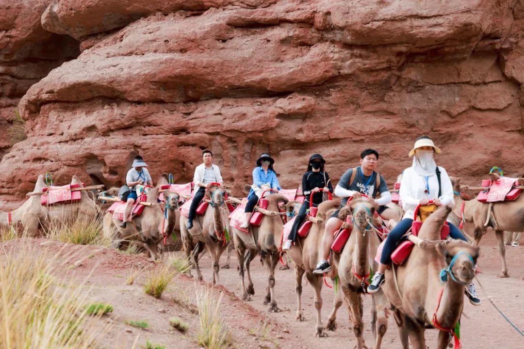在甘州區(qū)平山湖大峽谷,采風(fēng)團(tuán)成員乘坐越野車(chē)進(jìn)入夢(mèng)幻大峽谷谷底,在藍(lán)天白云下,縱橫的溝壑、林立的群峰、幽靜的森林、蒼茫的戈壁、多彩的民俗讓采風(fēng)團(tuán)成員嘆為觀止。來(lái)自福建的微博三百萬(wàn)大V張文圖說(shuō):“我已經(jīng)是第三次來(lái)張掖,此刻騎著駱駝踏入峽谷,抬頭看那高聳的崖壁帶來(lái)的震撼感瞬間將我包圍。沿著峽谷前行,每一步都充滿驚喜,太讓人驚嘆了。”“這次采風(fēng)活動(dòng)為我們搭建了很好的交流平臺(tái),特別是張掖獨(dú)特的地貌和優(yōu)美的自然風(fēng)光,都是很好的攝影素材,希望大家在這里收獲滿滿!”來(lái)自飛翔旅行的曹偉說(shuō)。
