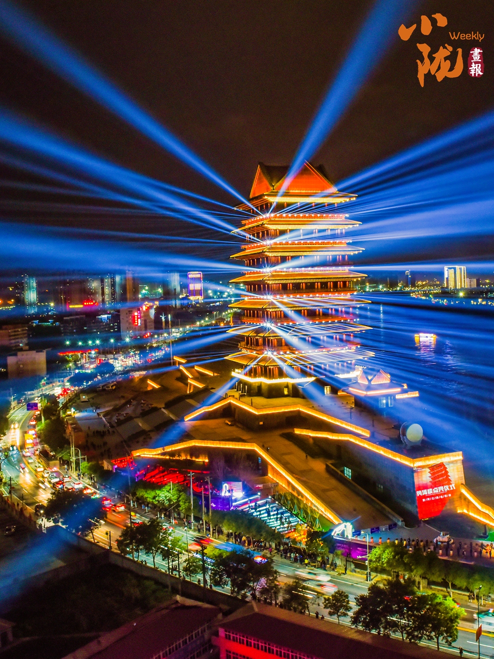 黃河樓熠熠生輝的塔燈光,高聳入云,光芒四射,美不勝收,照亮了整個(gè)蘭州夜空。五彩斑斕的燈光在黃河水面上舞動(dòng),讓人仿佛看到了蘭州的歷史和文化。