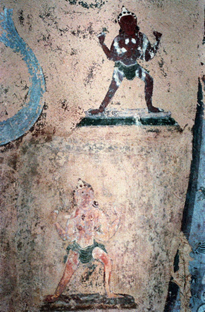 莫高窟465洞窟是從未開(kāi)放過(guò)的重要洞窟之一。其內(nèi)主要珍藏有關(guān)佛教密宗的壁畫(huà)。它們屬元代(公元1206—1368年)壁畫(huà)之精華,具有很高的藝術(shù)價(jià)值。圖為修復(fù)后的被盜壁畫(huà)之二明王像(下)。新華社記者李生才攝(1989年10月7日發(fā))