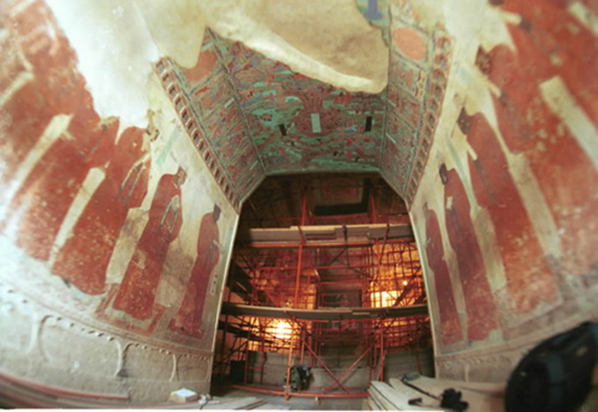 1989年年初,中國(guó)敦煌莫高窟465號(hào)窟內(nèi)的五處元代壁畫(huà)被盜。破案后,敦煌研究院立即組織有關(guān)專家將這些支離破碎的壁畫(huà)拼接粘合,以高超的技藝復(fù)原,然后按照?qǐng)D片檔案資料進(jìn)行描繪,使它們基本上恢復(fù)了被盜之前的本來(lái)面貌。