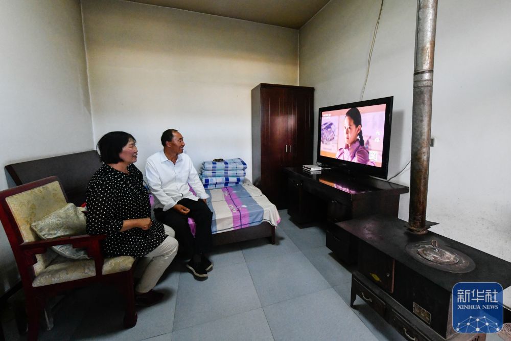 ↑7月16日,結束一天巡護后,張吉全和聞春瑜在房間里看電視,屋內爐子為冬日取暖所用。