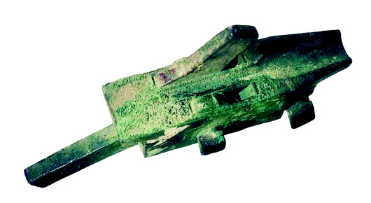 出土的青銅弩機共三件,制作精巧,外觀平整光潔。大件長14.5厘米,寬12.8厘米,重量為1031.9克。中件長14.9厘米,寬7.4厘米,重量為540克。小件長10厘米,寬4厘米,重量為11克。這三件弩機除了小件稍有點殘缺外,其余兩件基本完整。三件弩機造型沉穩(wěn),小巧玲瓏,且機廓都由青銅鑄造,這在已出土的弓箭類文物中比較罕見。經過專家鑒定,這是三國時期魏蜀征戰(zhàn)天水時的遺留文物。