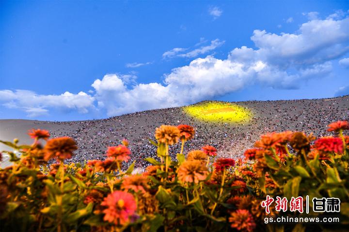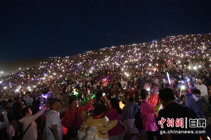圖為敦煌鳴沙山上,上萬(wàn)名游客靜待萬(wàn)人星空演唱會(huì)開幕。王斌銀 攝