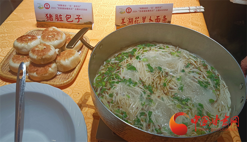 羊胡花蘿卜面條,看似用料簡單,點(diǎn)睛之筆是采自祁連山的羊胡子花,通過熱油澆淋激發(fā)食材香味,一口下去暖心養(yǎng)胃。