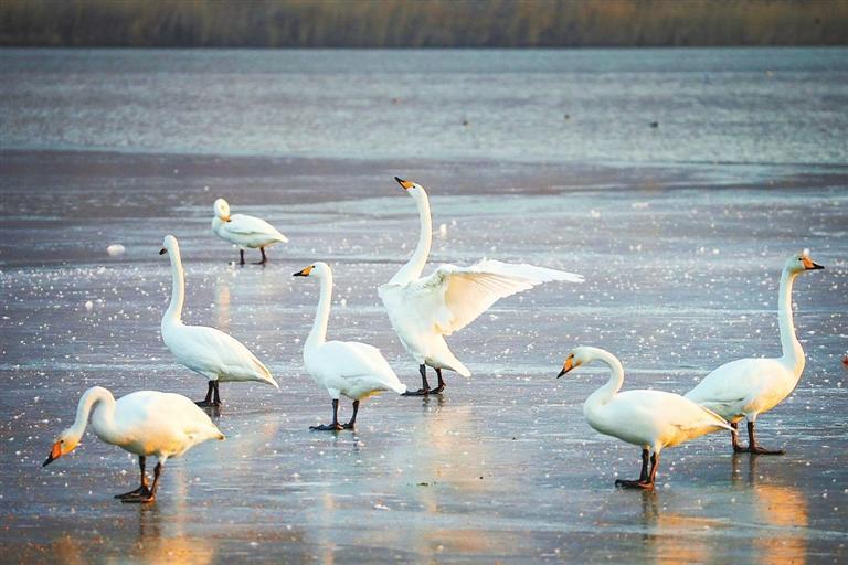 蘭州西固區(qū)達川鎮(zhèn)境內三河口的天鵝。丁凱