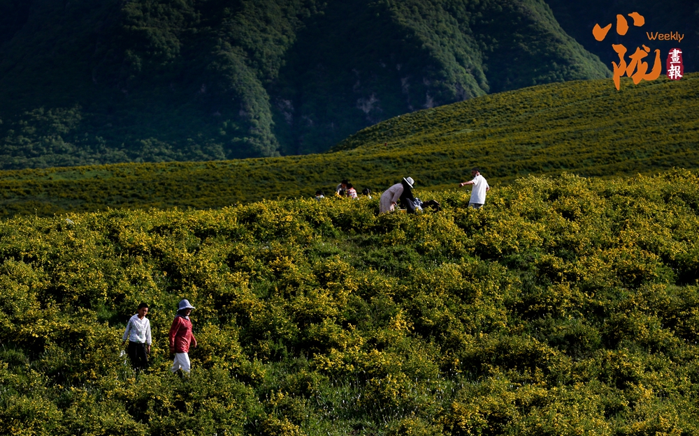 綽約多姿的金露梅,等不來蜜蜂蝴蝶的親吻,卻迎來如織游人,人氣爆棚,他們在花叢中嬉戲,爭先用相機記錄這別樣的風(fēng)景。