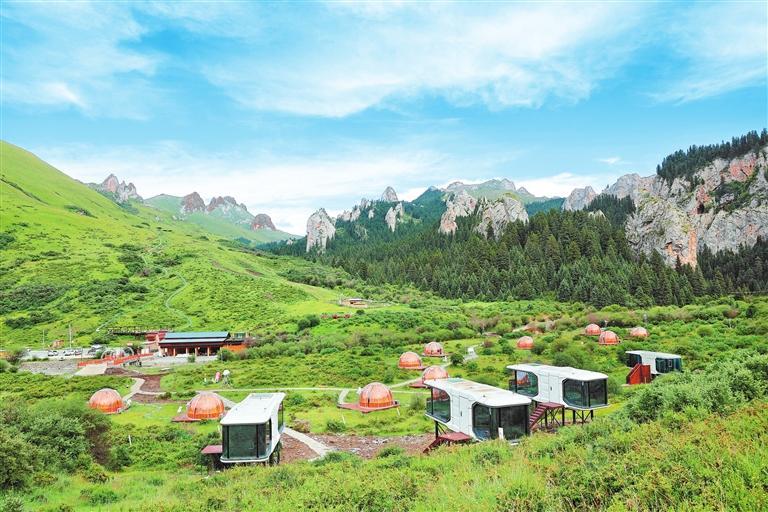 夏河縣的??撇菰希稳嗽谏介g草場(chǎng)、樹(shù)林河邊支起一頂頂帳篷,白天品著飄香的奶茶,晚上躺在草地上仰望星空,很是愜意。