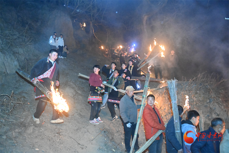 隴南文縣民俗資源多姿多彩,特別是到神秘的白馬山寨探尋白馬民俗文化,更是讓游客向往。這里有國家級非遺池哥晝,兼容原始野性和神秘色彩,是大山的饋贈,也是人與自然的對話。在白馬山寨,元宵節(jié)更是一年的狂歡時刻,火把節(jié)的火把在大山深處展露點點火光,匯聚成長長的火龍沿山而下,帶來對新一年美好生活的祈愿,人們圍著火堆跳舞,點燃山寨熱情。