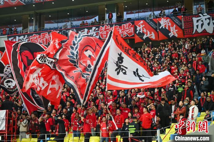 2025年3月2日,在四川成都舉行的2025賽季中超聯(lián)賽比賽中,成都蓉城隊(duì)(紅衣)主場(chǎng)迎戰(zhàn)天津津門虎隊(duì)?;鸨?ldquo;金牌球市”折射出成都賽事經(jīng)濟(jì)的日益崛起。劉忠俊 攝