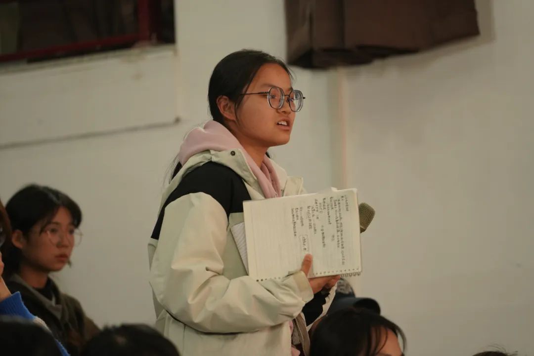嘉賓發(fā)言環(huán)節(jié)結(jié)束后,同學(xué)們積極提問,林紅衛(wèi)從多個寫作角度解答了大家的困惑。她強調(diào),寫作需要用心觀察生活,通過反復(fù)練習(xí)將情感外化為行動,傳遞生活中的真善美。