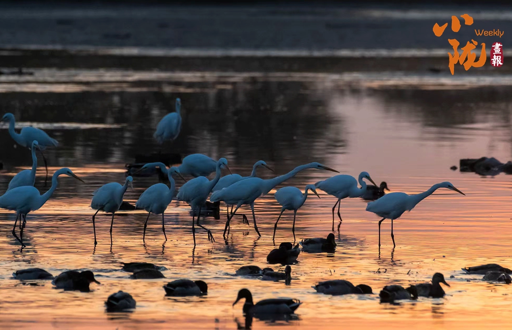 湖中的白鷺翩翩起舞,嬉鬧翻飛,歡快鳴叫,有的停落湖岸,有的游向湖心,有的翻飛空中,為游客帶來無盡的歡樂??带B兒們嬉鬧,仿佛回到童年時(shí)代。自由、自在、生機(jī)無限,讓每個(gè)人感受到無窮的生命力量。