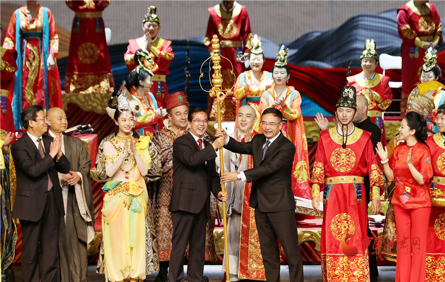 《玄奘西行》作為世界首部大型民族器樂劇,以絲綢之路文化交流使者玄奘的歷史故事為題材,集多民族樂器演奏和戲劇表演為一體,集中展示了敦煌莫高窟壁畫復原古樂器及古絲綢之路各民族傳統(tǒng)音樂的美妙旋律,體現(xiàn)了當代民族音樂的繼承與創(chuàng)新精神,是我國民族器樂舞臺藝術(shù)的高峰之作。演出結(jié)束后,中央民族樂團向甘肅省文藝院團捐贈舞美道具,并指導幫助甘肅省文藝院團實現(xiàn)《玄奘西行》的常態(tài)化駐場演出,為甘肅省再添一張靚麗的文藝名片。