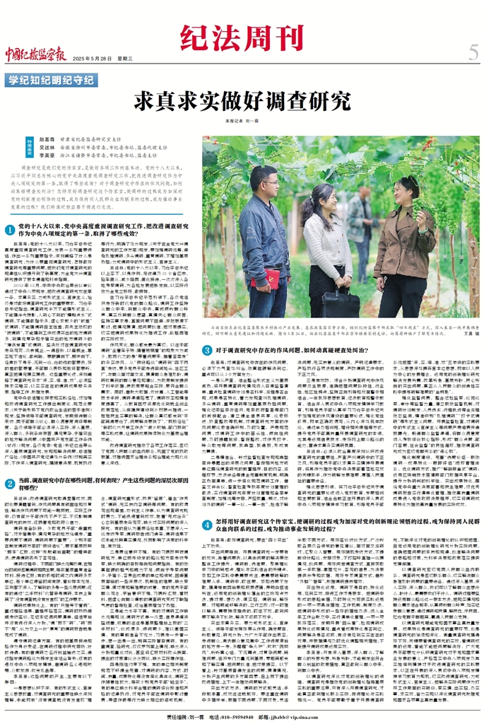調(diào)查研究是我們黨的傳家寶,是做好各項(xiàng)工作的基本功。黨的十八大以來(lái),以習(xí)近平同志為核心的黨中央高度重視調(diào)查研究工作,把改進(jìn)調(diào)查研究作為中央八項(xiàng)規(guī)定的第一條,取得了哪些成效?對(duì)于調(diào)查研究中存在的作風(fēng)問(wèn)題,如何動(dòng)真碰硬查處糾治?怎樣用好調(diào)查研究這個(gè)傳家寶,使調(diào)研的過(guò)程成為加深對(duì)黨的創(chuàng)新理論領(lǐng)悟的過(guò)程,成為保持同人民群眾血肉聯(lián)系的過(guò)程,成為推動(dòng)事業(yè)發(fā)展的過(guò)程?我們特邀紀(jì)檢監(jiān)察干部進(jìn)行交流。