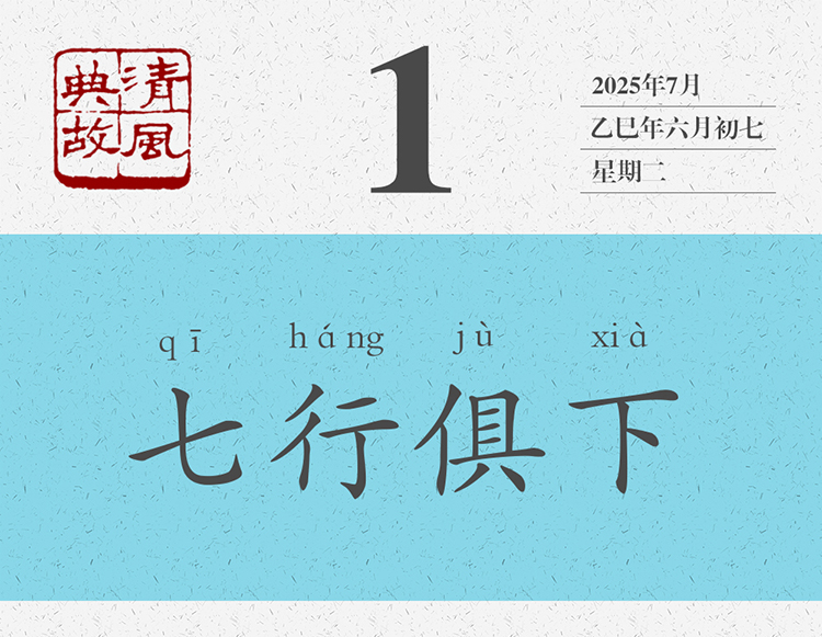 古代書策都是豎排,字自上而下,行自右而左,七行一起往下讀,這不僅需要一心多用的特殊技能,也需要過目不忘的記憶力。后世即以“七行俱下”來形容一個人讀書速度非???,閱讀能力特別強,也用來形容一個人天資超群,聰明過人?!段鍩魰?middot;卷十》中說到永明延壽禪師:“既冠不茹葷,日唯一食,持《法華經(jīng)》,七行俱下,才六旬,悉能誦之。”永明延壽禪師二十歲時就不吃葷食了,而且一天只吃一頓飯,手持《法華經(jīng)》,七行俱下,剛剛六十天,就能全部背誦了。