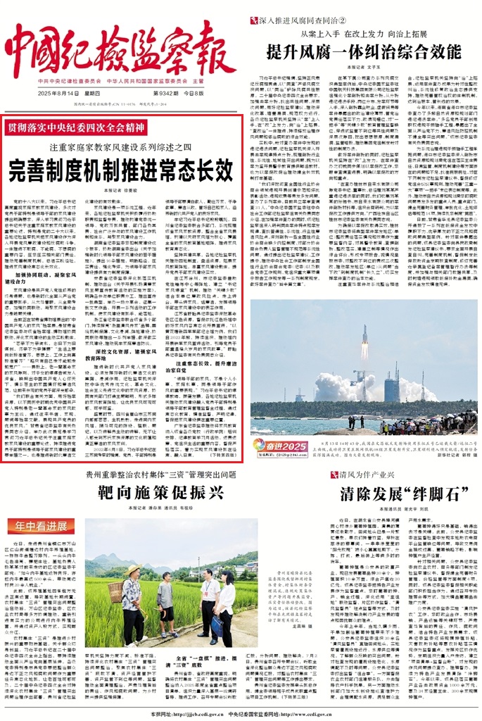 《中國紀(jì)檢監(jiān)察報》2025年8月14日 第1版