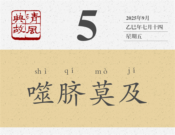楊伯峻認(rèn)為,“噬齊”是當(dāng)時(shí)的俗語(yǔ)。齊,通“臍”,即肚臍。“噬齊”即用嘴去咬自己的肚臍,意謂夠不著,咬不到。后世則以“噬臍”或“噬臍莫及”為典,比喻再后悔也來不及了。葉夢(mèng)得詩(shī)《懷西山》:“平生幾濡首,末路多噬臍。”