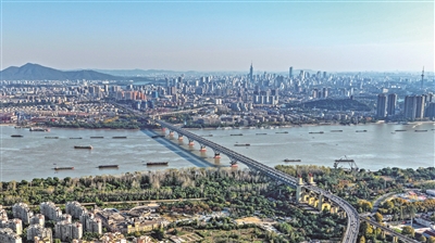 水運(yùn)連著國(guó)運(yùn),江河滋養(yǎng)文明。黨的十八大以來(lái),以習(xí)近平同志為核心的黨中央以長(zhǎng)江、黃河兩大流域發(fā)展戰(zhàn)略為主體架構(gòu),將經(jīng)濟(jì)社會(huì)高質(zhì)量發(fā)展和生態(tài)環(huán)境高水平保護(hù)相結(jié)合,在實(shí)踐中不斷完善和發(fā)展新時(shí)代江河戰(zhàn)略。圖為近日拍攝的長(zhǎng)江南京段和南京長(zhǎng)江大橋,江面百舸爭(zhēng)流,江畔美景如珠鏈鋪展(無(wú)人機(jī)照片)。新華社記者 李博 攝