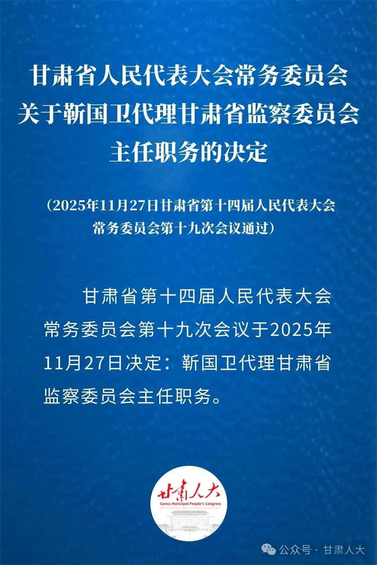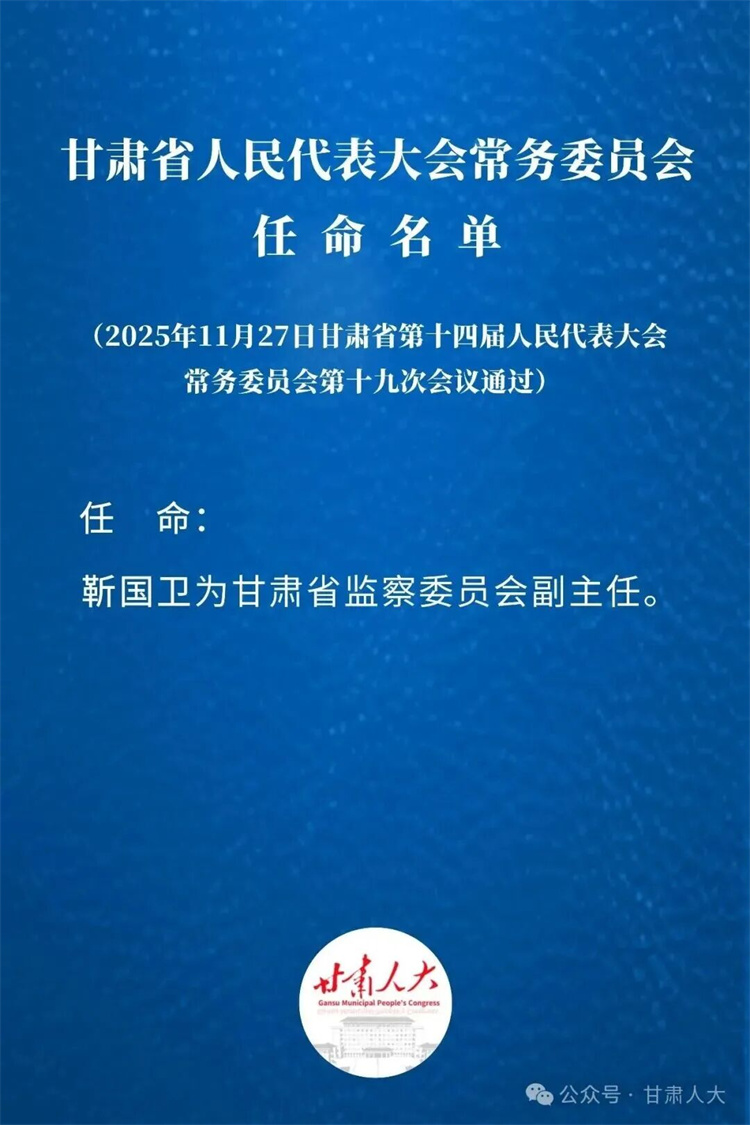 靳國衛(wèi)任甘肅省監(jiān)察委員會副主任,代理省監(jiān)察委員會主任職務(wù)